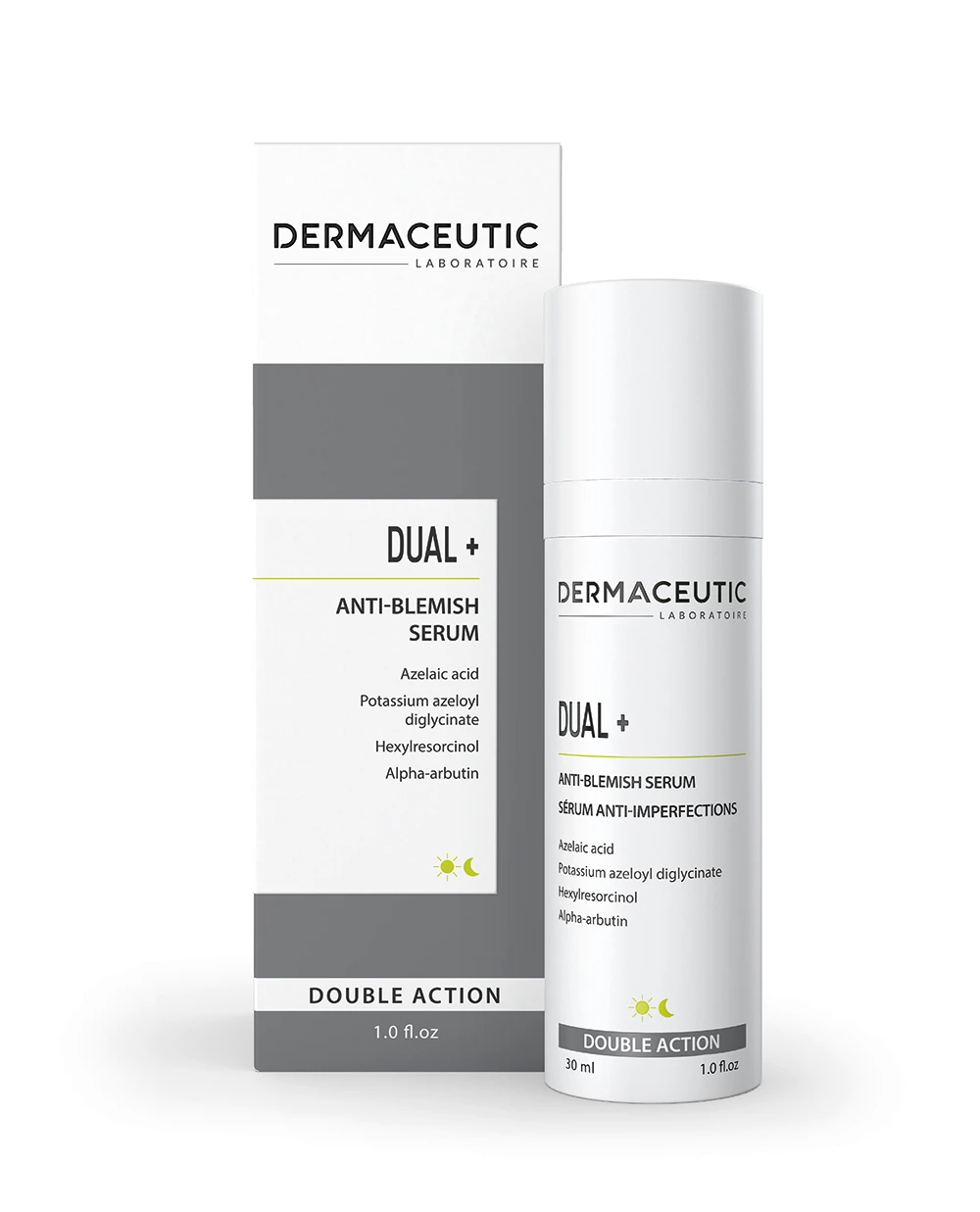 10% azelaïnezuur, 2% alfa-arbutine, 1% hexylresorcinol, 3% kaliumazeloyldiglycinaat.